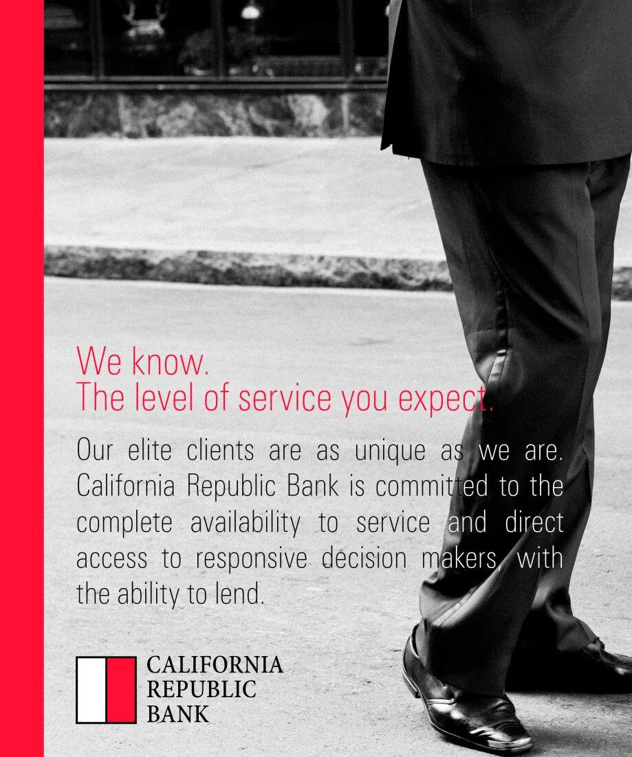 California Republic Bank asked for a campaign with two messages: (1) to sympathize with the client about their time and (2) convey how together, the bank and customer are elite.